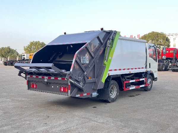 车辆上装配置:选配合肥长源HCHC液压齿轮泵,合肥长源HCHC多路换向阀;选配国内知名品牌-浙江佰事瑞帕瓦取力器,知名品牌油缸+液压油管+光电传感器,电控操作系统可选PLC | CAN总线一键连续循环、单次循环、紧急停止、手动/自动模式切换等功能;采用双向压缩技术,标配背压阀【增加垃圾装载量】,垃圾箱有效容积约7.5立方,箱体外观为圆弧流线性造型,箱体材质为高强度Q355锰钢板制作,尾部可选装2个240升挂桶翻转机构,安装气动密封盖|全密封大落地斗|三角斗……