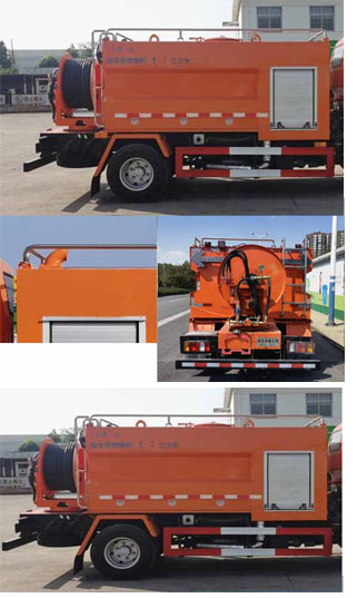 | 1.该车用于下水道清洗,装配有罐体和高压泵等;罐体总容积:3.9立方米,有效容积3.7立方米,介质:水,密度:1000千克/立方米,罐体外形尺寸(mm)长×宽×高为2000×2050×1215;2.侧防护装置,材料:Q235,连接方式:螺栓连接;后下部防护装置,材料:Q235,连接方式:螺栓连接,断面尺寸(mm):120×60,离地高度450mm;可选装ETC车载装置,选装顶部护栏,选装工具箱结构,选装后卷盘样式,选装顶部排气口,选装尾部爬梯和卷盘结构;3.ABS系统型号:CM4XL-4S/4M,生产厂家为:广州瑞立科密汽车电子股份有限公司;选装控制阀安装方式;侧标志灯为选装件. |